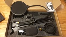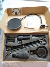 Доставка примерно 2 недели, курьером. Коробка пришла немного помятая, но не критично. Потёртостей и подобного не было. Я не профи, но в целом хороший микрофон. Брали в распродажу за 3.5к